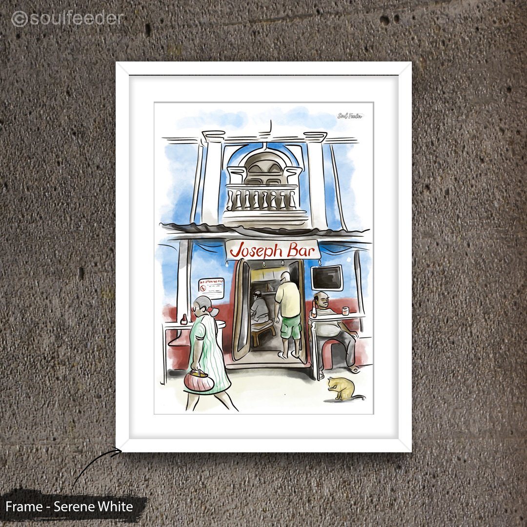 The Soul Stop series is an homage to all Gullys, Bars and Restaurants that just seem to hold our soul. Each artwork is printed on 300gsm HP paper and mounted on 400gsm handmade paper. With 2 options of frames (white and wooden) available,  match with the wall of your desire. Moreover options are also available in size to suit the space and mood available.