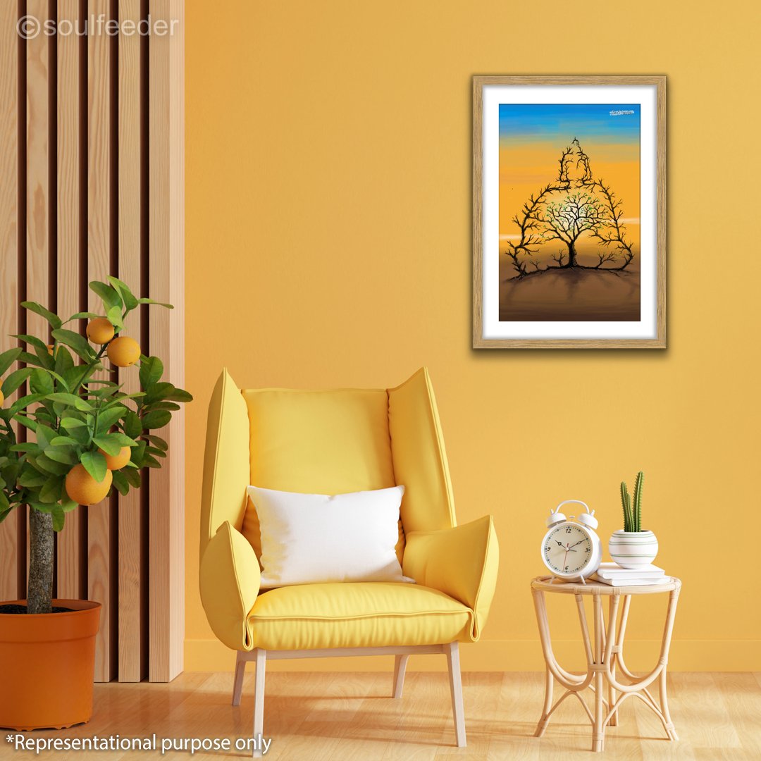 The Mystic Soul series has been mindfully created for the ones dedicated towards the spiritual ways. Each artwork is printed on 300gsm HP paper and mounted on 400gsm handmade paper. With 2 options of frames (white and wooden) available,  match with the wall of your desire. Moreover options are also available in size to suit the space and mood available.